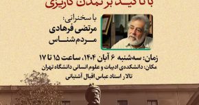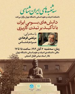 📍مکان: دانشکدهٔ ادبیات و علوم انسانی دانشگاه تهران، تالار علامه اقبال آشتیانی